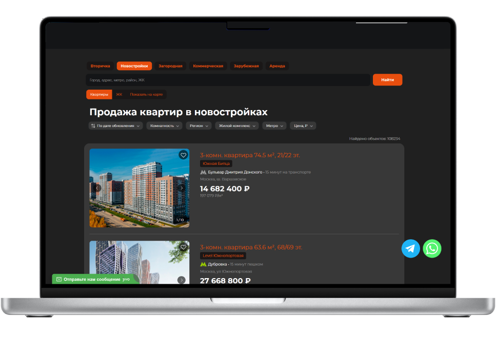 Сайт работает на ваши продажи 24/7 с полной интеграцией CRM. Удобный каталог с фильтрами, поиском и бронированием для аренды и продажи автоматически синхронизируется с досками объявлений. Адаптивный дизайн идеально смотрится на любых устройствах, а оплата через ЮKassa, СБП или в рассрочку ускоряет сделки.