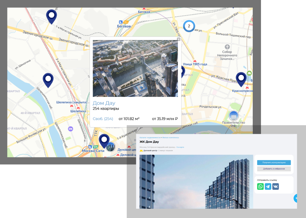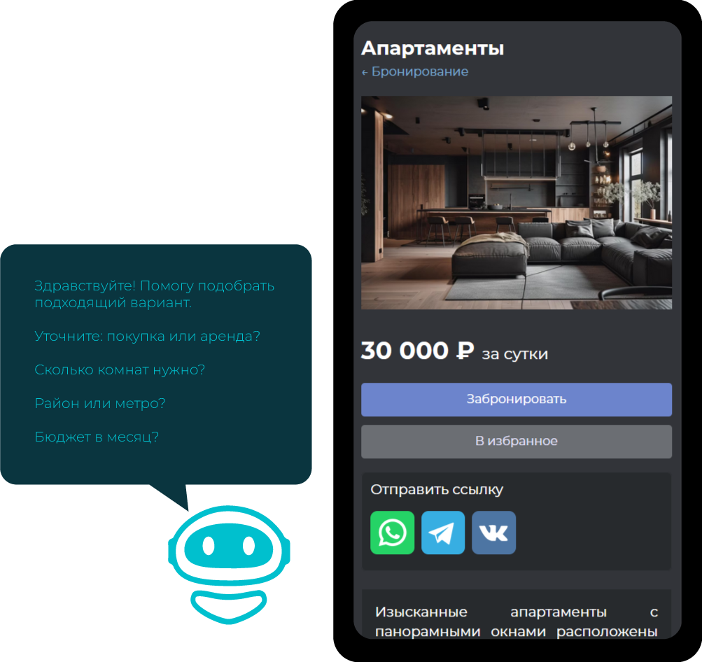 Сайт работает на ваши продажи 24/7 с полной интеграцией CRM. Удобный каталог с фильтрами, поиском и бронированием для аренды и продажи автоматически синхронизируется с досками объявлений. Адаптивный дизайн идеально смотрится на любых устройствах, а оплата через ЮKassa, СБП или в рассрочку ускоряет сделки.